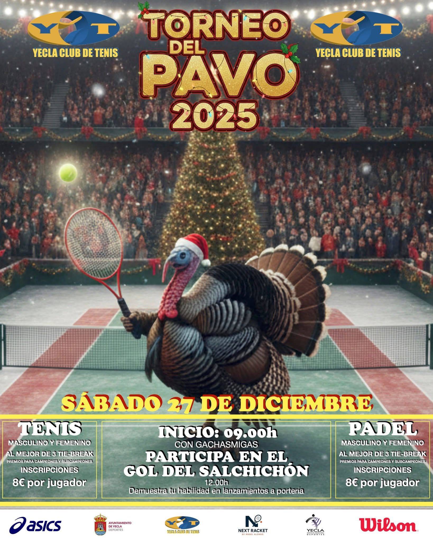 Un año más, el Yecla Club de Tenis organiza su ya tradicional Torneo del Pavo, una cita lúdico-deportiva dirigida a socios y alumnos de la Escuela Deportiva del Yecla Club de Tenis.